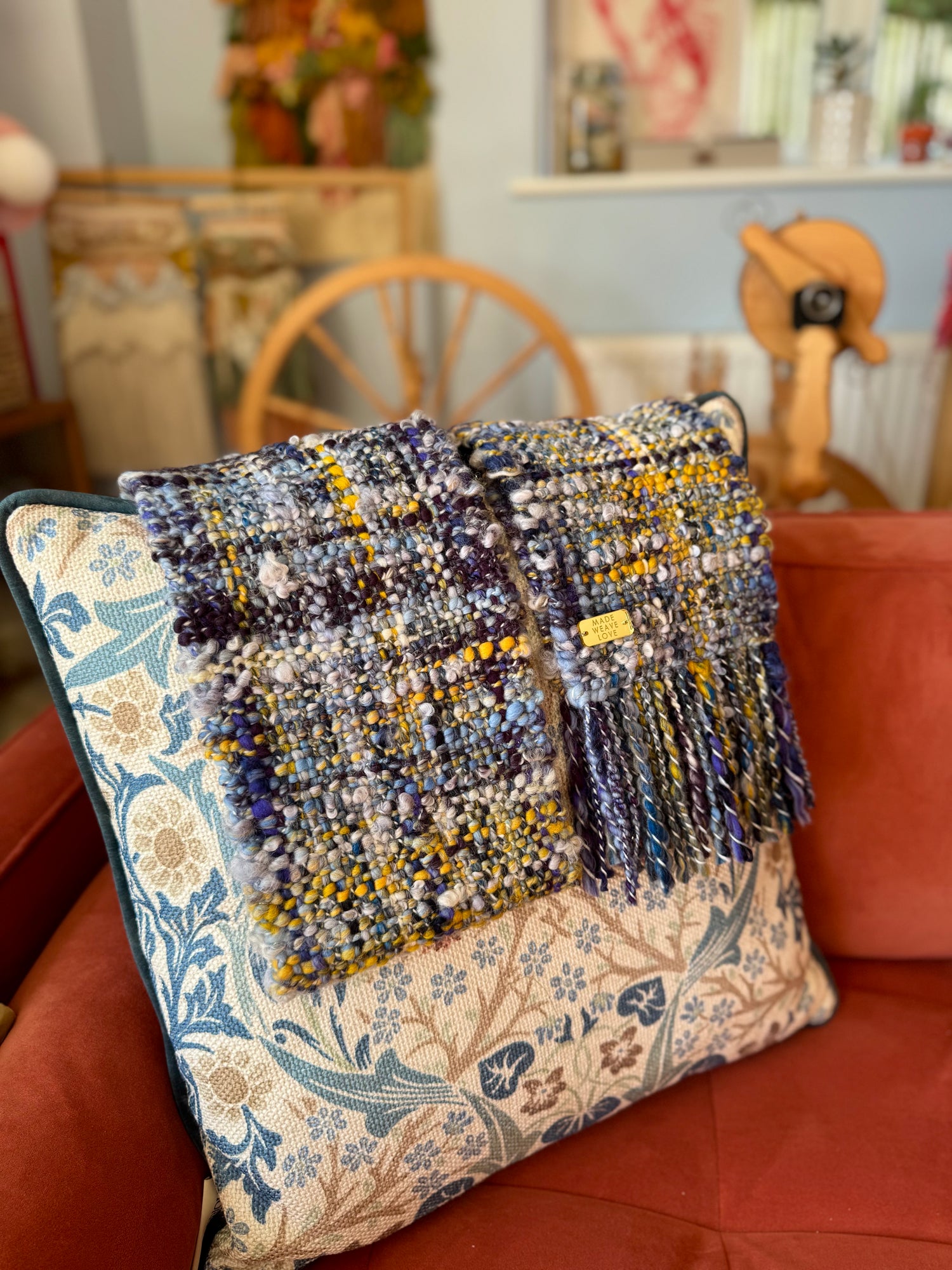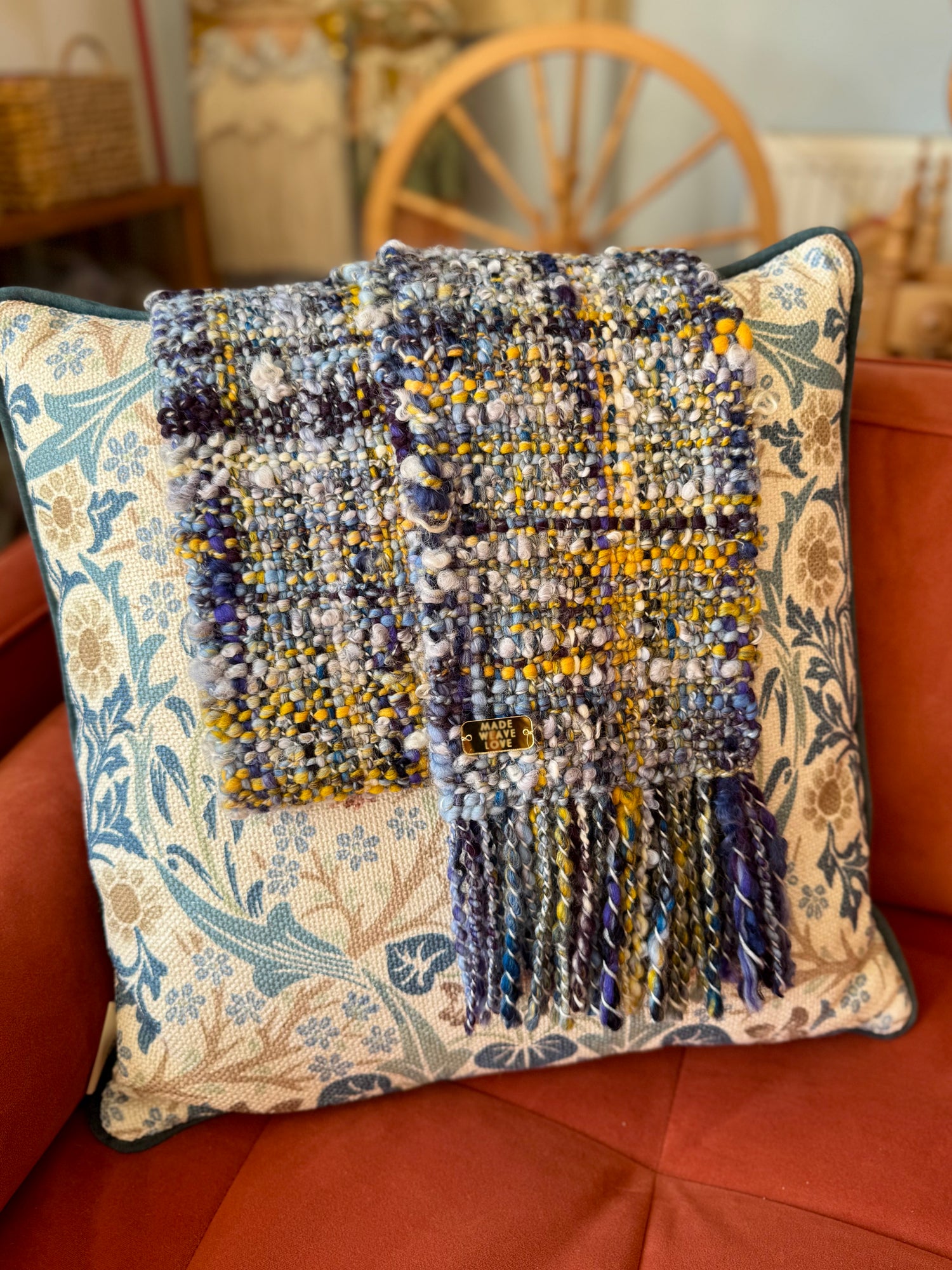 Each length is carefully hand-spun on my spinning wheel into a richly textured, chunky yarn, then expertly woven on my loom to create a truly unique piece. To finish, a golden “MadeWeaveLove” tag is hand-stitched on, adding a final touch of distinction. Your scarf will arrive safely tucked inside a branded cotton storage bag, ready to be treasured.